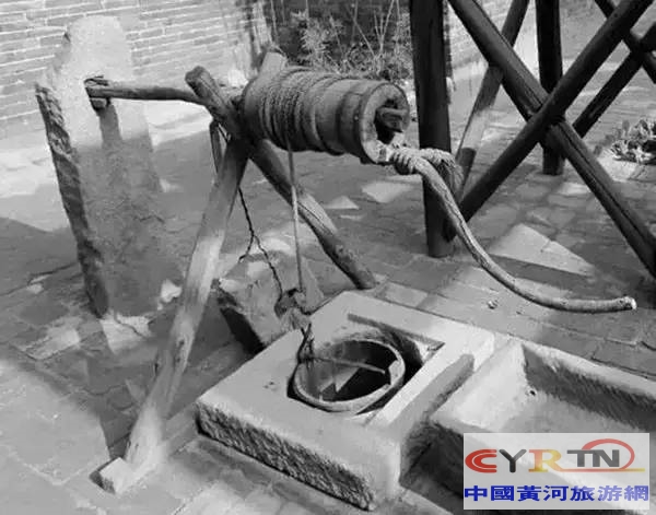 轱辘架子,西北农村干旱缺水,井打的比较深,所以都要用这样的轱辘卷绳打水。