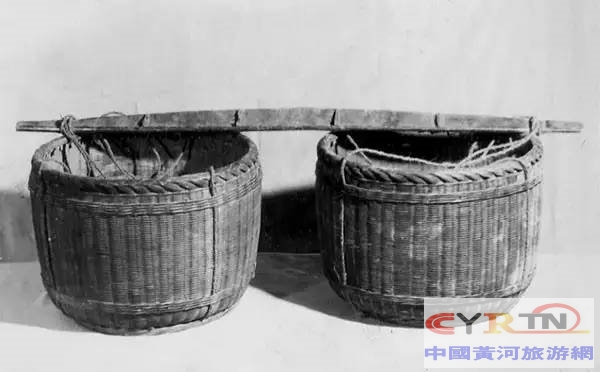 扁担和箩筐,这一套装备农村人主要是用来挑谷物用的,现在已经很少有人用它了。