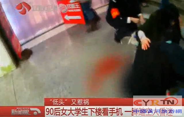 现在不少人都患上了手机依赖症,连走路都不忘看手机。日前,江苏南京警方公布了一段视频:一名年轻女性看着手机下楼梯,结果一脚踏空滚下来,当场晕了过去,满脸是血。