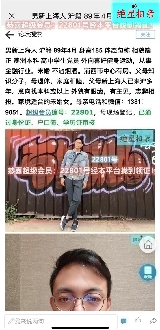10.可在多个分类相亲信息版块里同时显示自己的信息,获得最多潜在成功机会,举例:91年未婚上海人女硕士信息,可在90后未婚上海人女硕士和本科两个版块里同时显示。