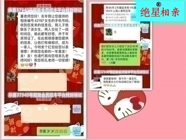 1.超级会员可联系的匹配人数比高级会员可联系的匹配人数多2倍:刚登记的新人相亲信息都只会最先上传到“登记信息超级群”的微信群里,不会上传到本平台网站上公开显示(高级会员无法查看),超级会员可最优先挑选去联系或由我方帮推荐联系。