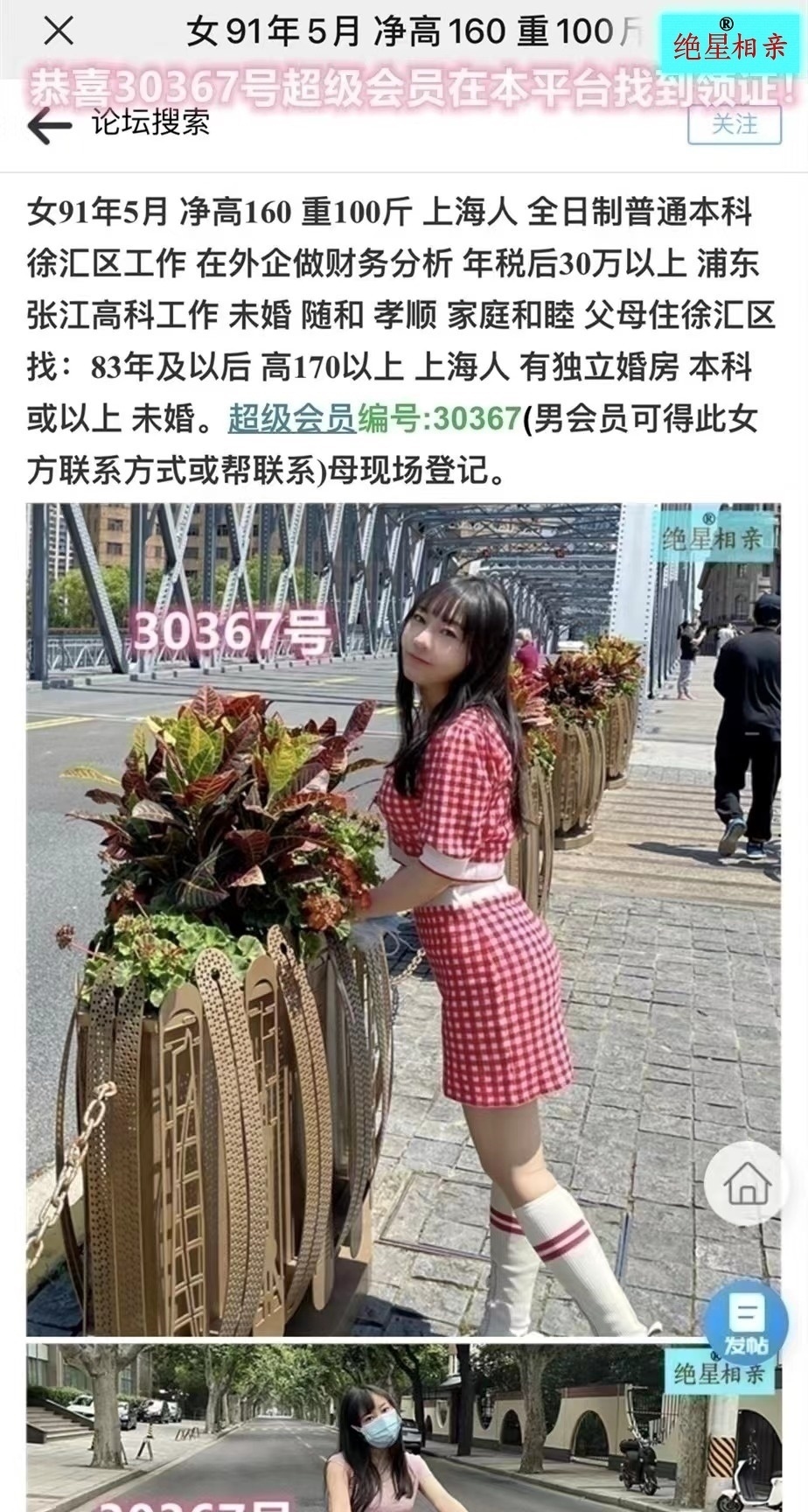 10.可在多个分类相亲信息版块里同时显示自己的信息,获得最多潜在成功机会,举例:91年未婚上海人女硕士信息,可在90后未婚上海人女硕士和本科两个版块里同时显示。