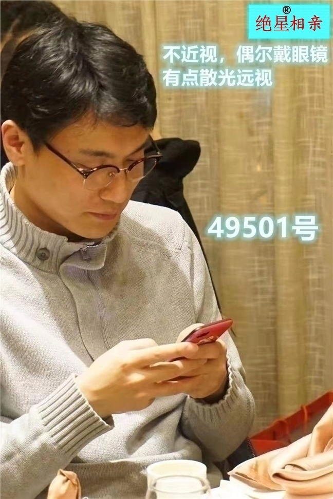 男 91年9月,净高176,重148斤,上海户口,江苏太仓人,南京上的全日制本科,徐汇内环有三室新装修独立婚房(有少许商业贷款,父母会帮还清),有车,未婚,徐家汇某央企总部有编工程师,工作稳定,朝九晚五不加班,年税后20万以上,阳光,幽默,爱好运动、体育、旅游等,没在本平台留他照片(我方见过他照片,长相中上,他只要私下自己给女方发照片),不抽烟,不喝酒,家庭和睦,父国企高管、母国企管理在职,父母是大学生。找:90年及以后,净高160及以上,本科或以上,未婚。编号29601,母现场登记。状态:没找到