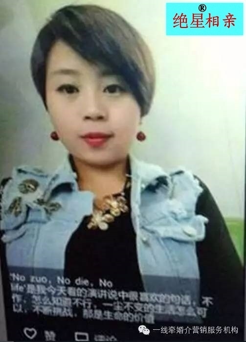 女87年3月 净高158 重98斤 未婚 江西人 青岛外语学院大专,外企后勤管理,月税后5千,也可和男方一起买上海婚房,随和,有一亲姐、父母老家退休,本人在浦东租房。找:大7岁内 净高165及以上,户籍不限,未婚。编号40482(仅男付费成会员者可得此女孩本人联系方式或帮联系)本人现场登记。状态:没找到