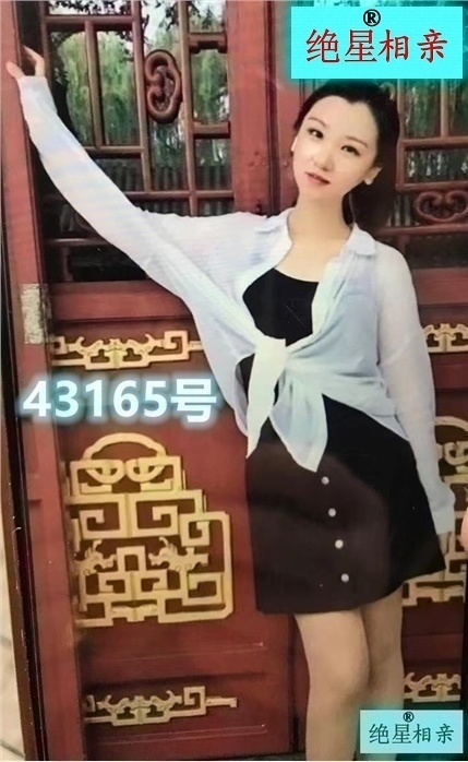 女87年 属免 净高167 重100斤 上海人,大专,未婚,没在本平台留她照片(我方见过她照片,长相中上,小脸,她只要私下自己给男发照片),某航空公司有编空姐,工作稳定,税后年15万,未婚,开朗,孝顺,父母退休,住闵行浦江镇。找:大10岁内,户口不限,婚况不限(如有孩子的判归前妻的可以),净高170以上。编号50356,姑姑帮登记。状态:没找到
