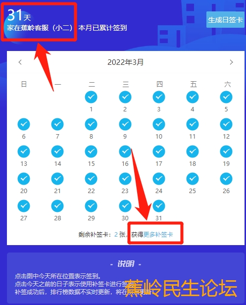 2022年3月签到全勤奖励:回复留言领开心红包+3张补签卡