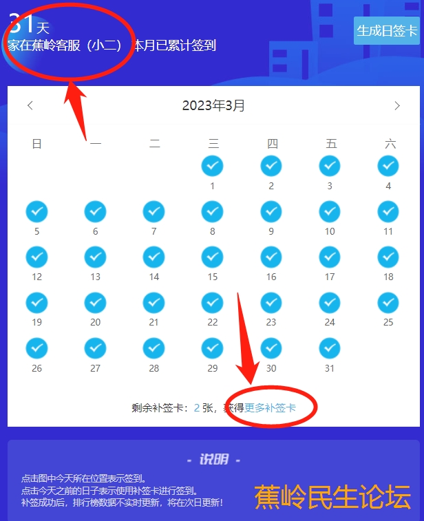 2023年3月签到全勤奖励:回复留言领开心红包+3张补签卡
