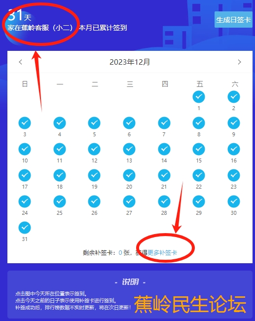 2023年11月签到全勤奖励:回复留言领开心红包+3张补签卡