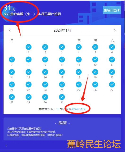 2023年12月签到全勤奖励:回复留言领开心红包+3张补签卡
