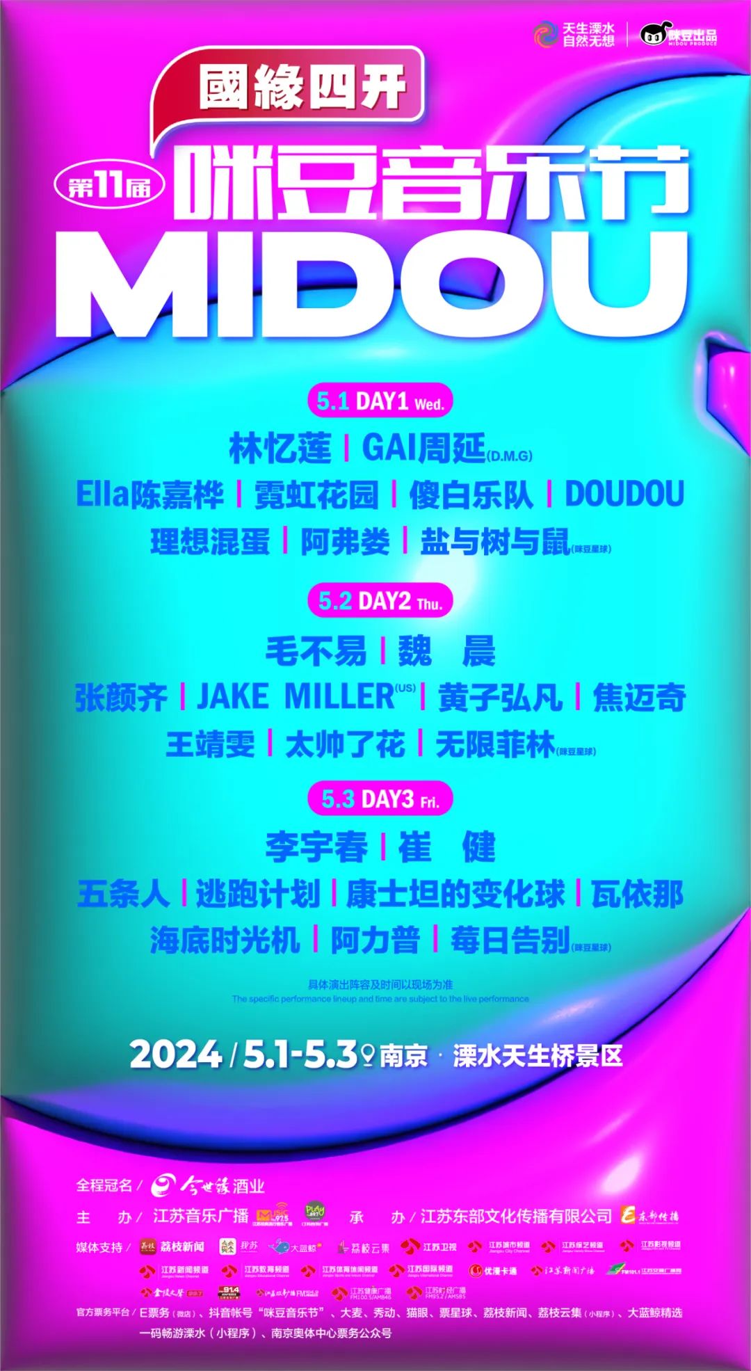 五一假期时节,更有郁郁葱葱的参天林荫、盛开的玫瑰花海、彩虹滑道、创意的拍照打卡圣地,年轻美好的群体,一起去感受生命年轻、热烈的状态。当然,还有来自咪豆对乐迷观演体验感十年如一日的重视,对周边配套服务一如既往的高要求;来自人与人之间的交集、碰撞、包容和相拥。这个五一假期,第11届咪豆音乐节,期待你的到来!