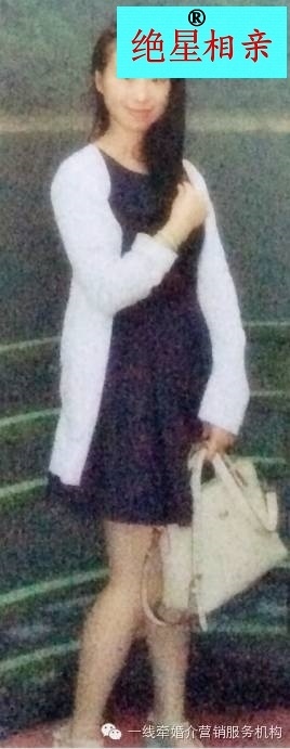 女90年8月 净高168 苗条 上海户口 江苏淮安人 上师大硕士 没留照片(长相好,女方只愿私下自己给男方发看照片)陆家嘴外企银行票据有编制 年税后15万以上 未婚 独生女 之前都忙工作了没时间谈恋爱 父母企业现还未退休浦东张江有房 找:净高175以上 江浙沪人 上海有婚房 全日制本科及以上 收入相仿 大5岁内 未婚。普通会员编号:25854(符合要求者在我方工作微信上留言后可免费得联系方式)母现场登记。状态:没找到
