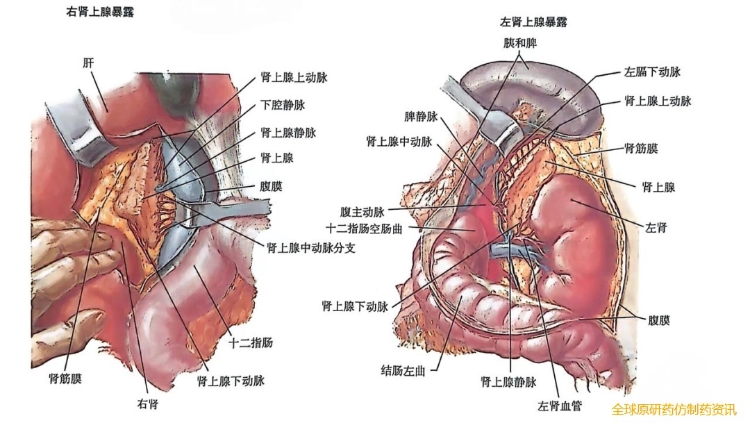 采用Kocher手法可以有效暴露右侧腹膜后腔。这个手法主要是从腹膜后间隙游离十二指肠外侧边缘的附着点,并将其向内侧牵拉。