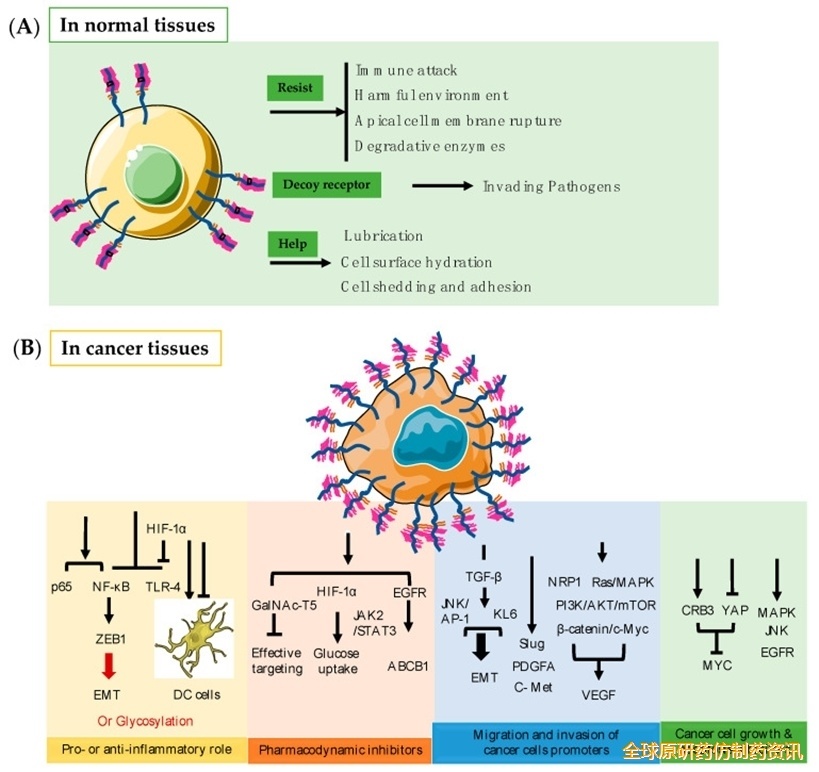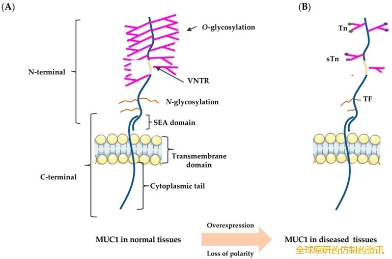 图1. 正常组织与肿瘤组织中的MUC1示意图3