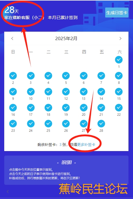 2025年2月签到全勤奖励:回复留言领开心红包+3张补签卡