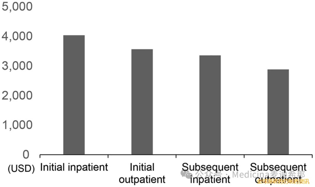 图1. 通过比较癌症患者住院和门诊化疗的实施情况,估算模型病例成本(美元)。