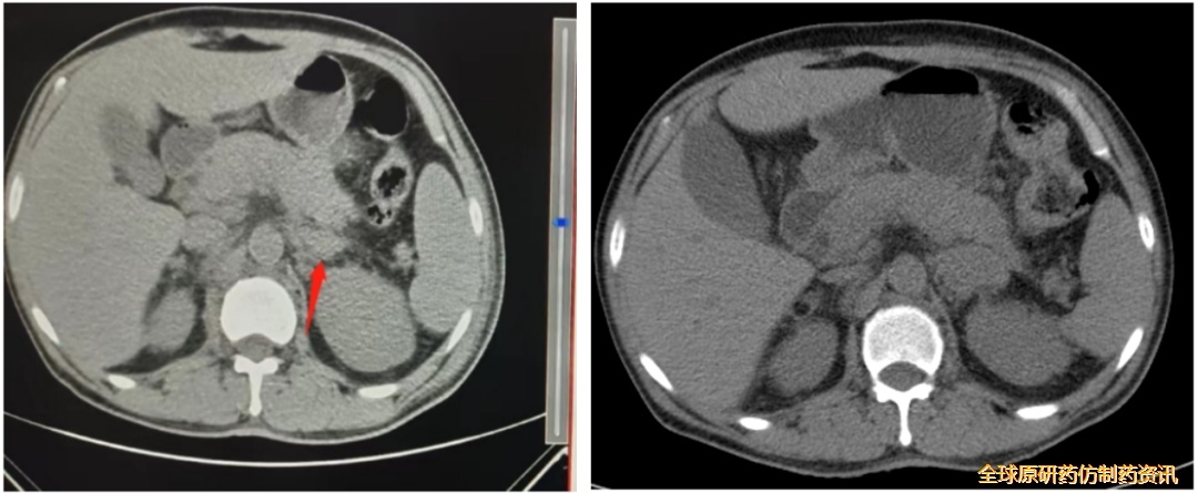 图2. 2022.03.29(左)、化疗4个周期(右)胸部CT平扫检查结果