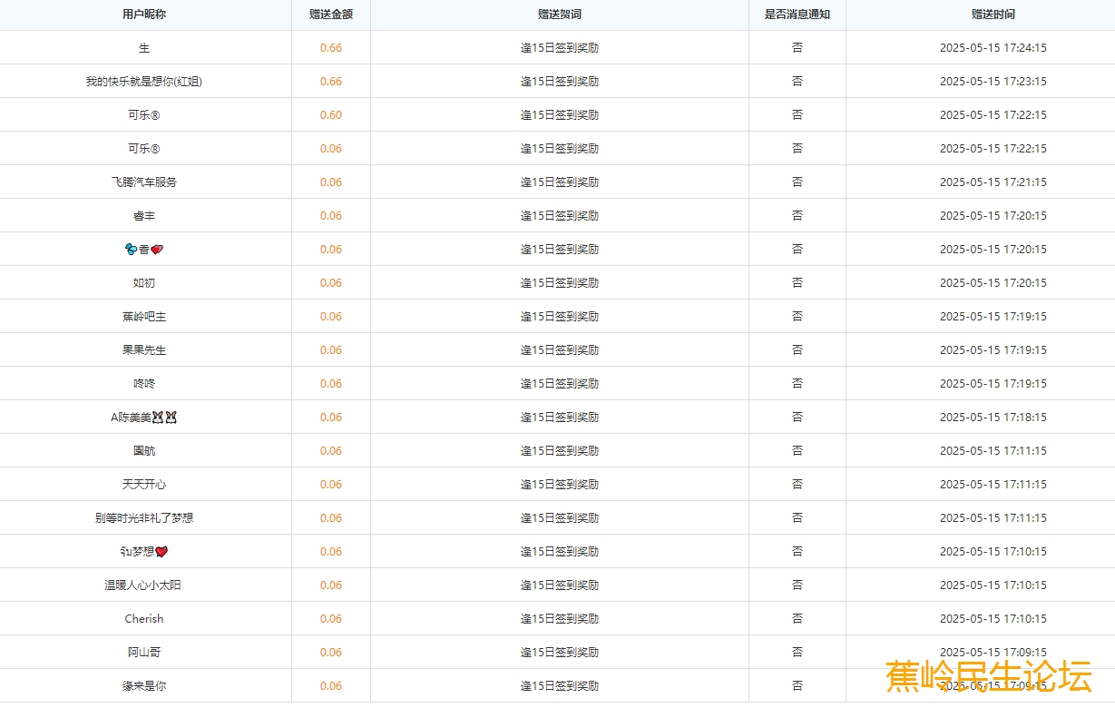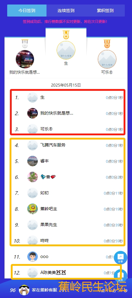 温馨提醒:今天签到榜中奖的红包已经由系统统一派发,请到中奖坛友到论坛首页领取。(因系统只能显示排名榜前100名,凡102、105、108、112、115、118、122、125、128.....请转发链接或截图给:家在蕉岭客服(小二)登记领奖,谢谢!)