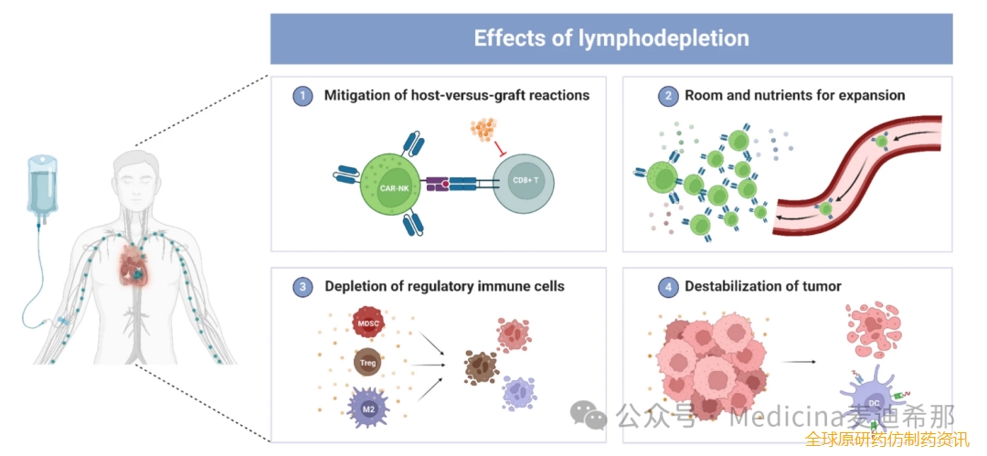淋巴细胞耗竭是CAR治疗中一个至关重要的准备步骤,可显著提高这些治疗的有效性。通过在输注CAR NK细胞之前施用化疗或其他淋巴细胞耗竭药物,该过程系统性地减少了患者现有的淋巴细胞计数(图6)。