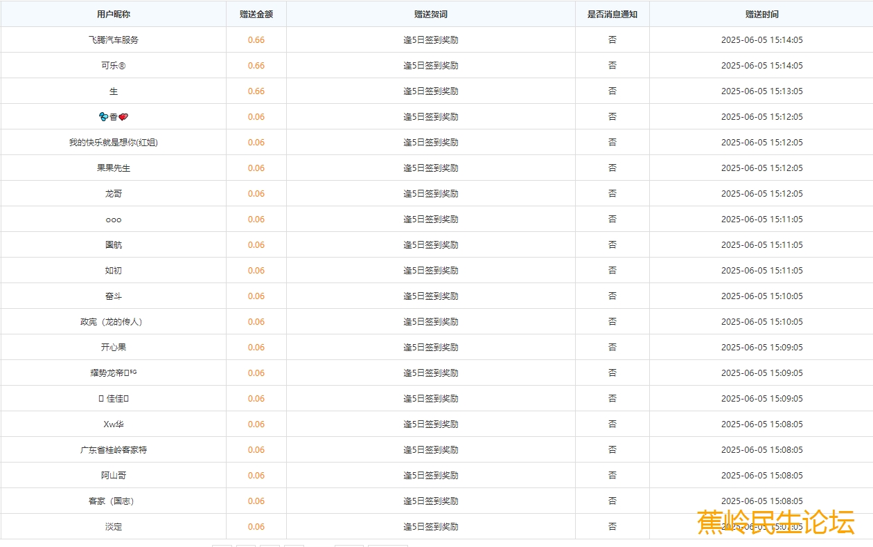 温馨提醒:今天签到榜中奖的红包已经由系统统一派发,请到中奖坛友到论坛首页领取。(因系统只能显示排名榜前100名,凡105、108、110、115、118、120、125、128.....请转发链接或截图给:家在蕉岭客服(小二)登记领奖,谢谢!)