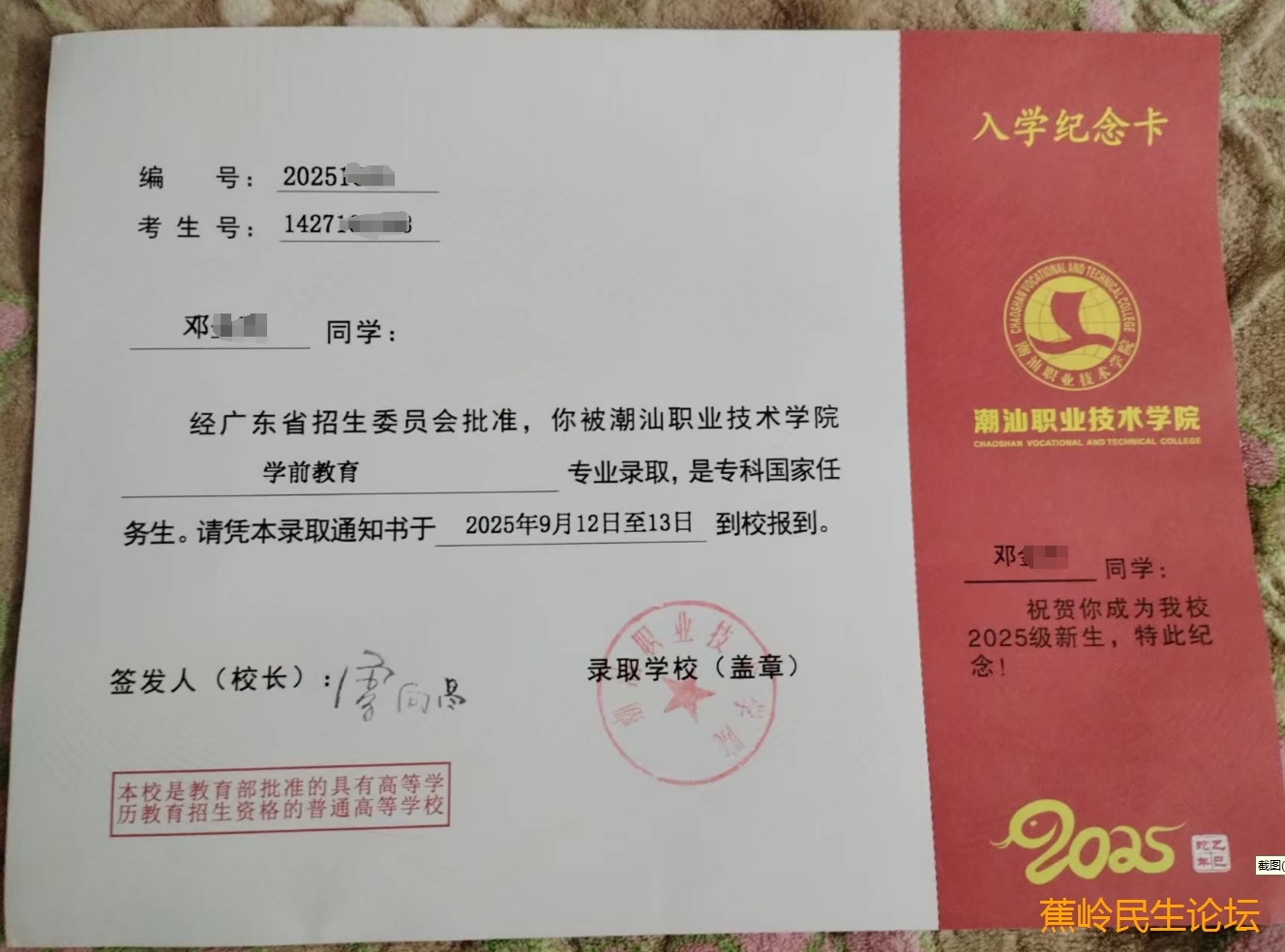 尊敬的家在蕉岭爱心互助会全体成员,您们好!您们资助的学生邓同学就读于华侨中学,现已高三毕业,参加了春季高考,未参加夏季高考,已被潮汕职业技术学院录取,专业是学前教育,感恩您们一直以来的爱心资助!祝福您们万事如意!财源广进!康乐常伴!阖家幸福!