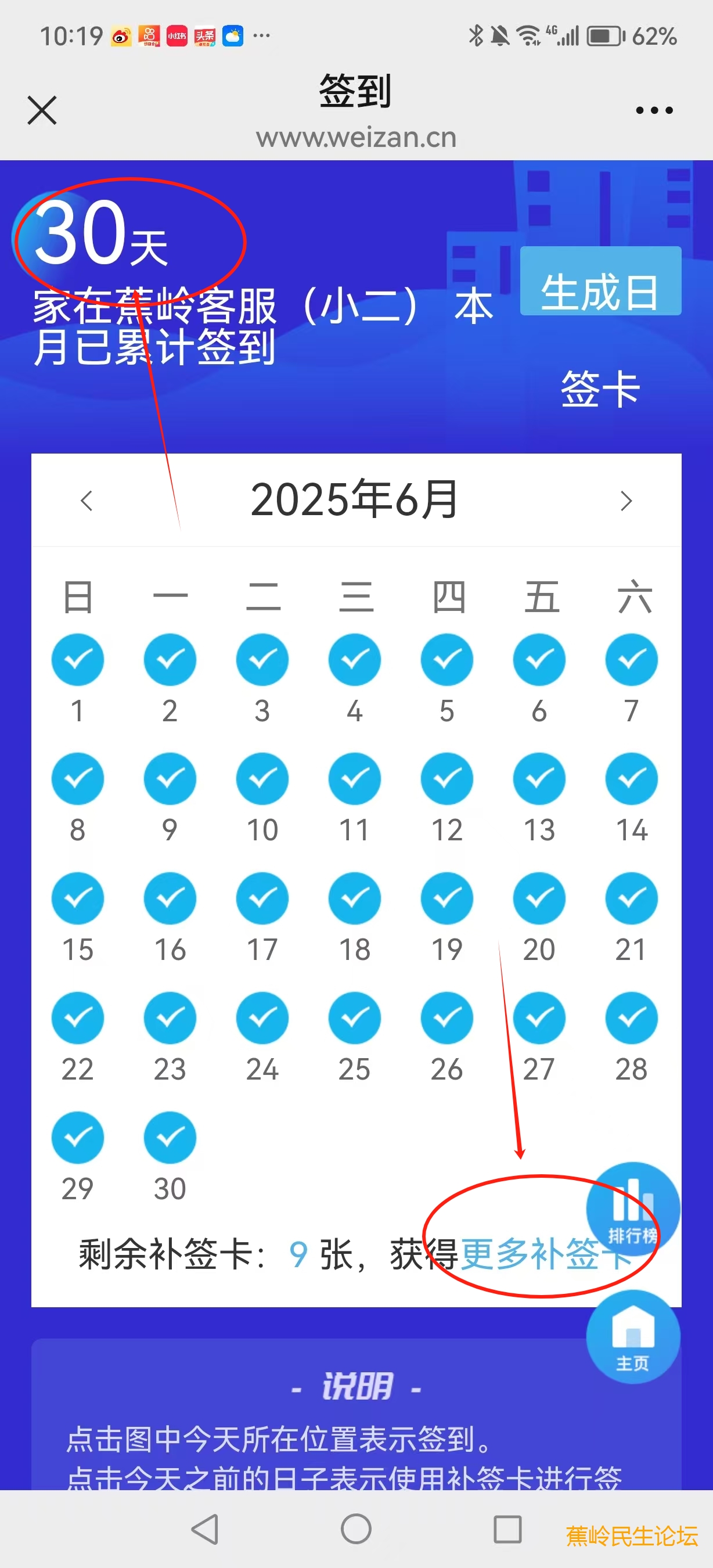 2025年6月签到全勤奖励:回复留言领开心红包+3张补签卡