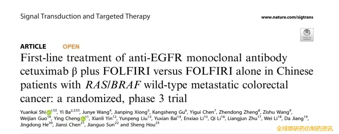 2025年,在《信号转导与靶向治疗/Signal Transduction and Targeted Therapy》杂志(IF:40.8)发表了题为《一线治疗中,针对中国RAS/BRAF野生型mCRC患者,使用抗EGFR单抗β联合FOLFIRI方案与单用FOLFIRI方案的效果对比:一项随机、Ⅲ期临床试验》的研究数据[14] (图5)。