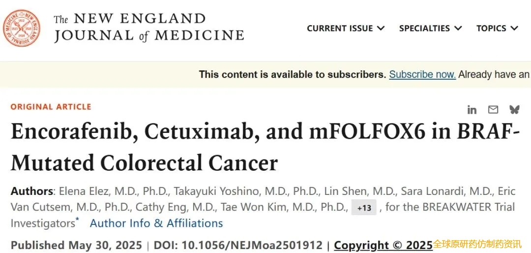 2025年5月,Elena Elez等[11],在《新英格兰医学杂志/NEJM》(IF:158.6),发表题为《恩曲他滨、西妥昔单抗和mFOLFOX6在BRAF突变mCRC中的应用》的研究报告,公布了无进展生存期(PFS)和总生存期(OS)中期数据(图4)。