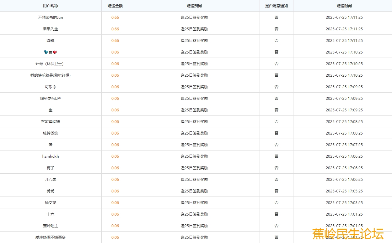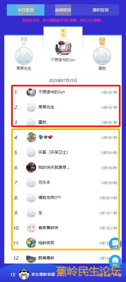 温馨提醒:今天签到榜中奖的红包已经由系统统一派发,请到中奖坛友到论坛首页领取。(因系统只能显示排名榜前100名,凡101、104、107、111、114、117、121、124、127.....请转发链接或截图给:家在蕉岭客服(小二)登记领奖,谢谢!)