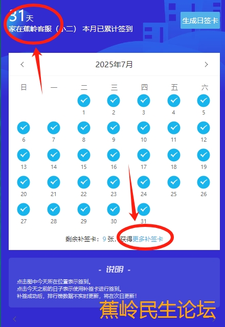 2025年7月签到全勤奖励:回复留言领开心红包+3张补签卡