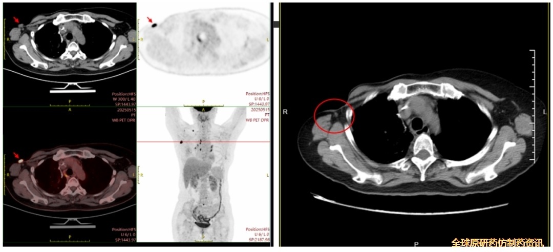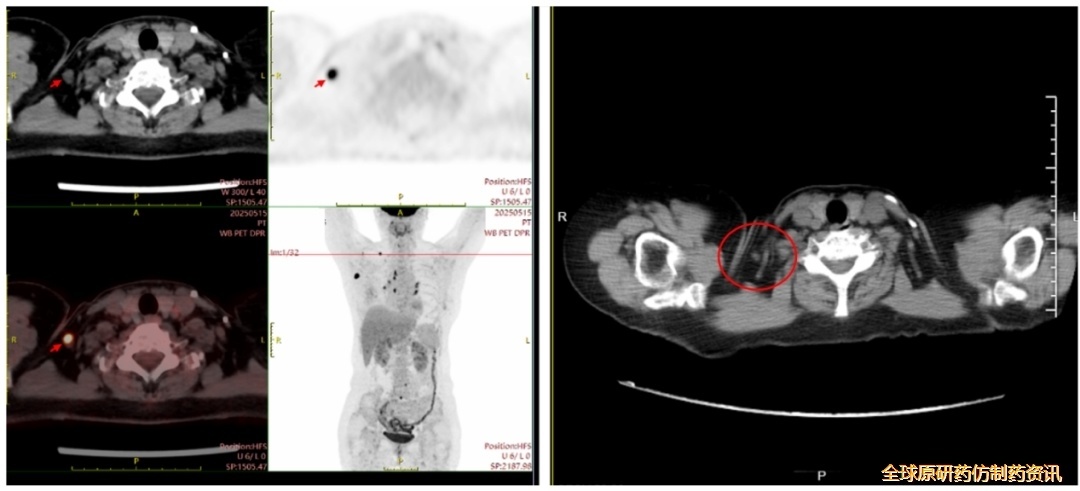 (图左:PET-CT检查,时间2025-5-15;图右:胸部CT检查,时间2025-7-22)