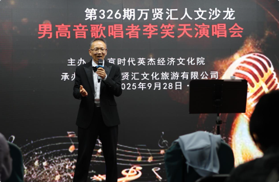 本网北京讯(高文玉 李永峰 呼林平 高云 )“男高音歌唱者李笑天中国歌曲演唱会”暨第326期万贤汇人文沙龙于2025年9月30日下午在北京西城朗琴国际大厦1119会议厅举行。本期活动由北京时代英杰经济文化院主办、北京万贤汇文化旅游有限公司承办,属于公益性音乐普及项目,观众自愿报名,免费参加。本期活动报名45人,实际出席33人,自2003年以来,万贤汇沙龙已经举办326期,总参加人数已达14961人次。教育部退休干部、北京大学心理学教授雄胜忠,全球华语歌坛“情歌公主”、著名原创歌手张渼壹,国家开放大学研究员石知石,著名评论家文化学者罗竖一,著名文化活动家、群主之家创始人刘金彪,新经济学者李刚,中国社科院大学硕士生导师安国俊,中国智慧工程研究会徐国敬,中国行为法学会赵锡伟,亚太体育联合会副秘书长张流泉,星光大道歌词获奖者何全兴,画家诗人词作家李振来,中华写龙第一人汪礼贤,著名禅意画家傅香,北京富响商贸王宗于,健康管理师刘连英、宋婉宁,湖南诗人南蛮,音乐疗愈王伟,富响商贸王宗于,中国十大红色收藏家李长东,河南省营销协会会长刘英,基层廉政教育网常艳红,外企退休高管董建国,启心理咨询工作室王玉玲,戏曲与声乐爱好者李燕等嘉宾出席活动。