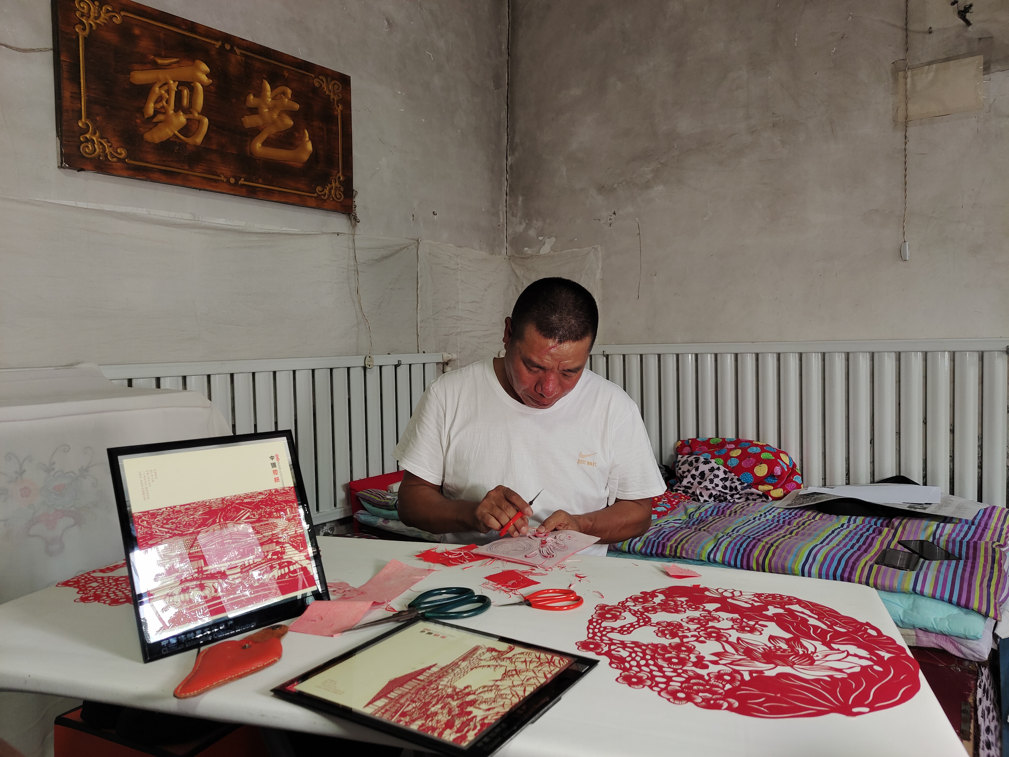 寨南村的张文龙剪纸,技艺精湛,热爱剪纸技术,是省级非遗传承人。常进行非遗展示,还有进课堂 教学生剪纸。一直坚守手工剪纸,作品比较灵动,有思想灵魂存在。