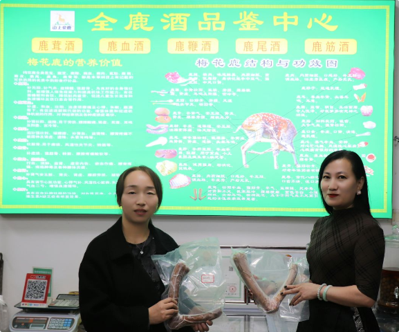 “梅花鹿全身是宝”的说法在鹿润堂得到充分印证。从补元阳、益精髓的鹿茸,到补肾壮阳、强筋骨的鹿鞭;从调节心肌功能的鹿心,到益血补脾的鹿肝;再到肉质细腻、高蛋白低脂肪的鹿肉、鹿排,其各部位皆为药食同源的珍品,涵盖了男女老幼不同群体的滋补需求。基于此,公司总经理刘丽娜主导研发推出鹿茸酒、鹿血酒、鹿鞭酒、鹿尾酒、鹿筋酒五款特色养生鹿酒,将传统滋补食材与酿酒工艺相结合,让养生更具仪式感与便捷性。“每一款鹿酒都遵循古法炮制,核心是充分释放食材营养成分,让消费者在享受饮用口感的同时,收获实实在在的食疗价值。”刘丽娜表示,这些产品已成为日常养生、亲友馈赠的优质选择。