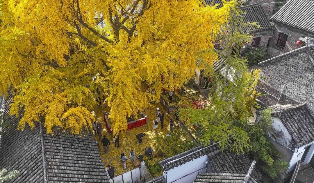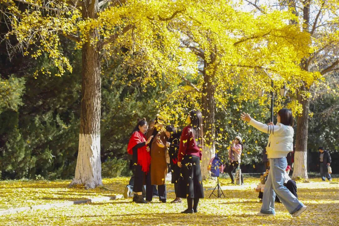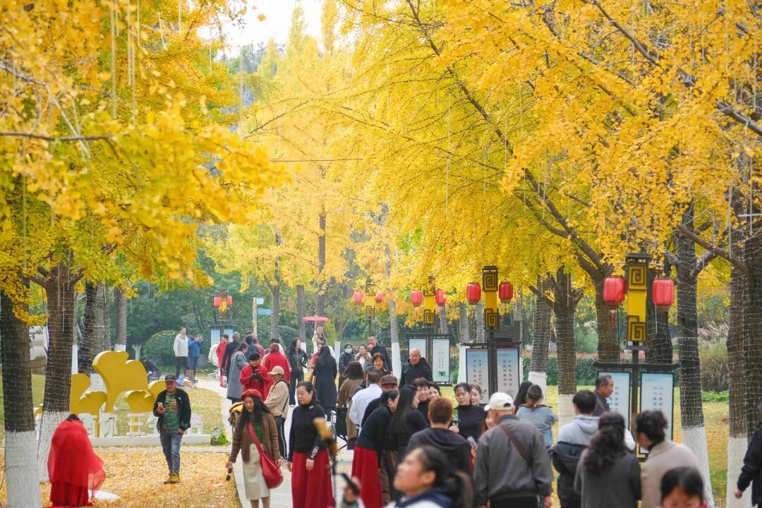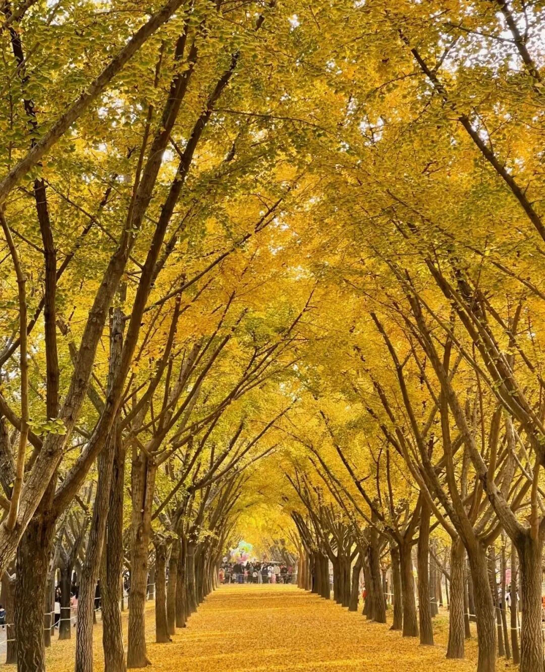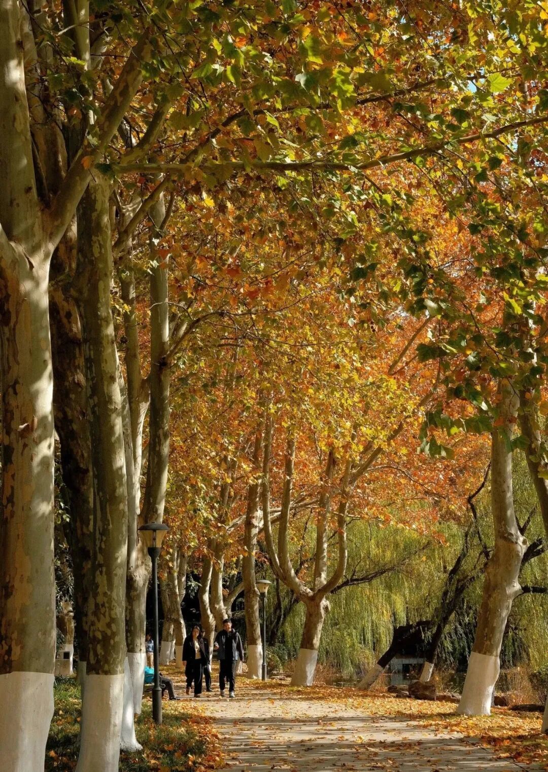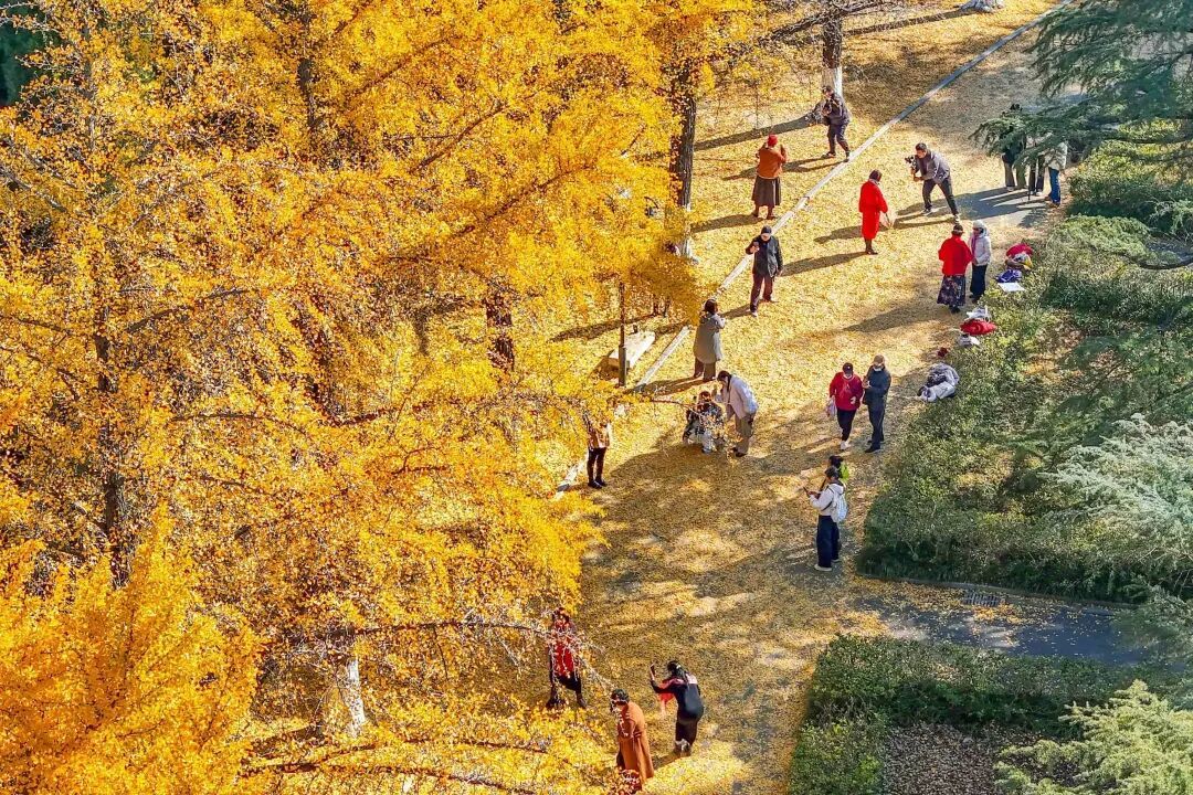 初冬的淮海战役烈士纪念塔园林的银杏大道,300余株银杏树正值最佳观赏期