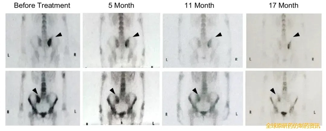 其中,两例典型患者的情况值得广泛关注:患者1治疗后2个月肺转移瘤缩小17%。