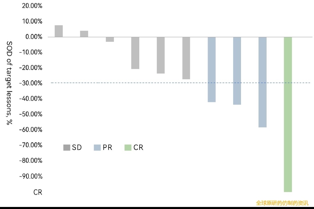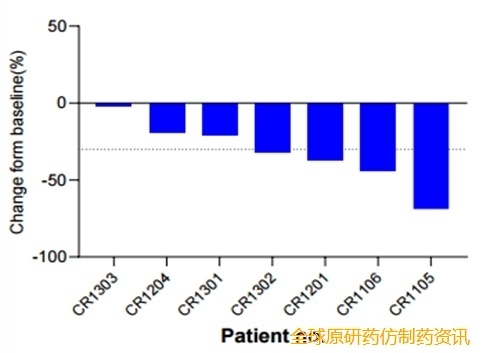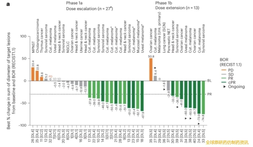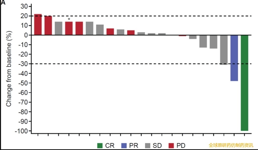 ▼基于RECIST1.1的临床反应瀑布图