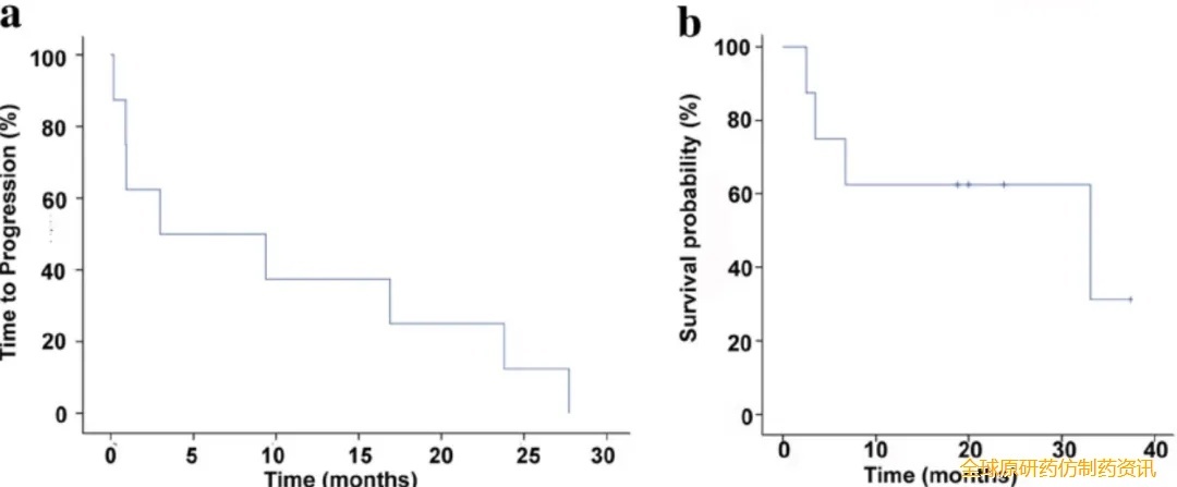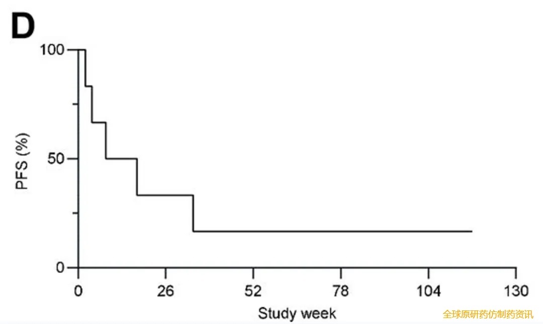 结果显示:疗法初步疗效良好且耐受性佳:总体客观缓解率(ORR)42.9%;10例接受目标剂量(1.5×10⁹/7.5×10⁹个细胞)患者中,50%达部分缓解(PR)、50%达病情稳定(SD),中位无进展生存期(PFS)为5.8个月。