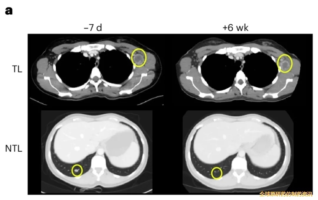 2025年10月,该疗法在ESMO大会公布Ⅰ期临床数据(NCT06544720):7例复发性/转移性晚期癌患者接受治疗后,均实现肿瘤缩小或负荷减轻,疾病控制率(DCR)100%;其中4例(57%)肿瘤缩小超30%(2例确认PR、2例待确认PR)。目前中位随访4.3个月,中位无进展生存期(PFS)及总生存期(OS)尚未达到。