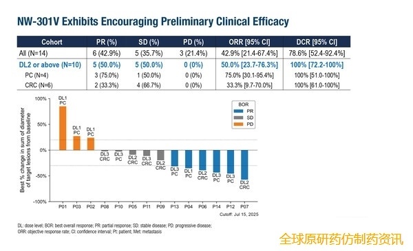 2025年ESMO大会公布其研究者发起的首个人体I期临床初步结果:14例HLA-A11:01+/KRASG12V+不可切除/晚期结直肠癌(CRC)、胰腺癌(PC)患者(无有效治疗选择),接受三种剂量水平治疗。