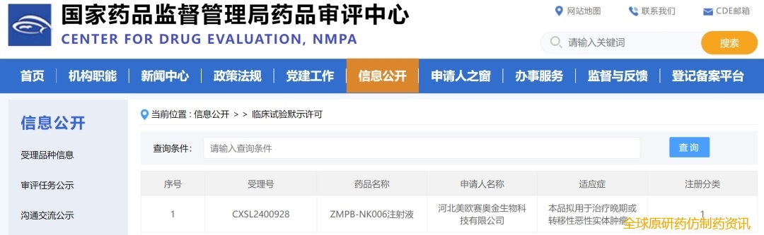 ZMPB-NK006注射液是河北美欧赛奥金生物研发的一款现货型NK细胞,同时也是是全球首个现货型NK细胞疗法。2025年,中国国家药品监督管理局(NMPA)批准该注射液的新药临床试验(IND)申请,拟用于晚期或转移性恶性实体肿瘤治疗。