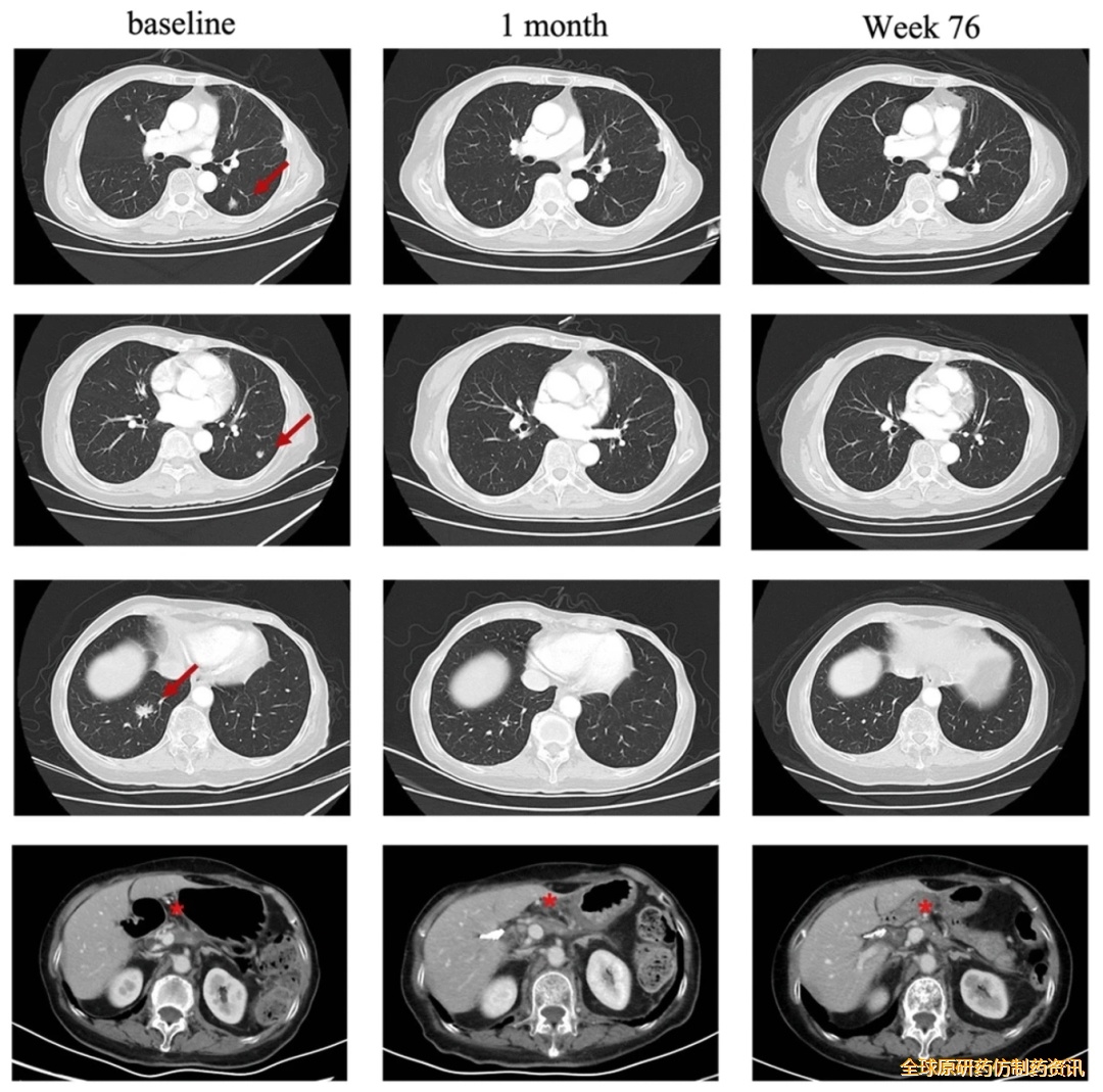 结果显示:CT041治疗第4周,患者达到部分缓解(PR);后续肺转移靶病灶完全消失,进一步达到完全缓解(CR),截至2023年7月最后一次随访,肿瘤控制情况持续良好。
