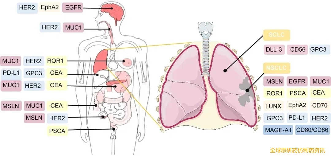 ▼CAR-T细胞疗法的潜在治疗靶点