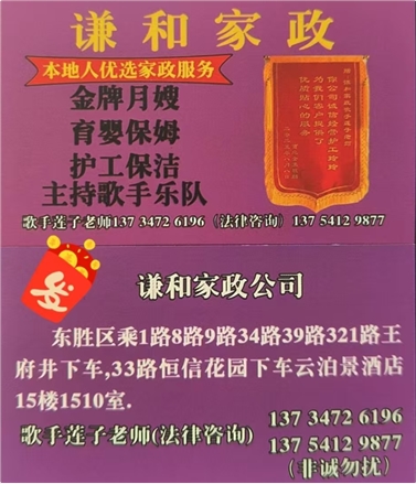 2. 特色服务类:主持、歌手乐队演出、专业代东、免费法律咨询、婚姻介绍、旅游包车、搬家服务、专业/业余歌手代唱及录音棚优惠录音(含话筒音响设备提供)