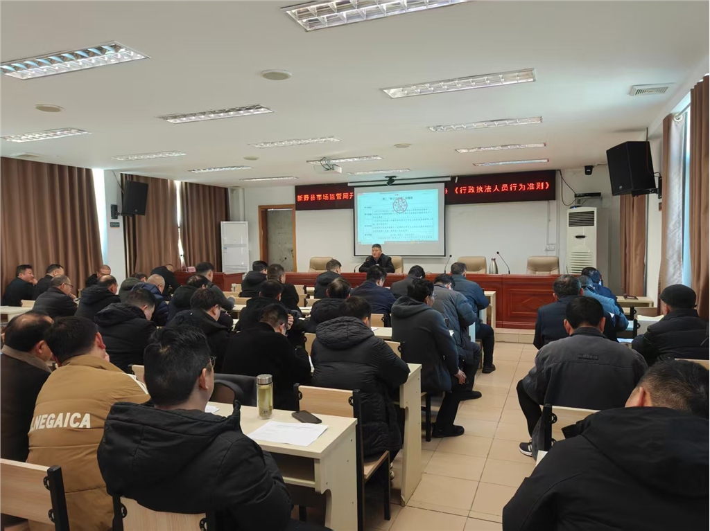 本网讯(邢玉克 李可 徐书辉)为深入学习贯彻习近平法治思想,全面推进严格规范公正文明执法,推动规范涉企行政执法专项行动走深走实,1 月 6 日,新野县市场监督管理局在六楼会议室开展《行政执法监督条例》《行政执法人员行为准则》专题培训,全体行政执法人员参训。