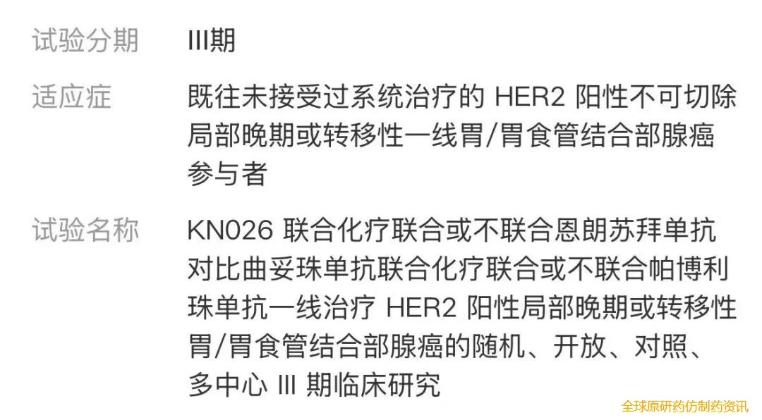 目前关于KN026开展的临床试验有: