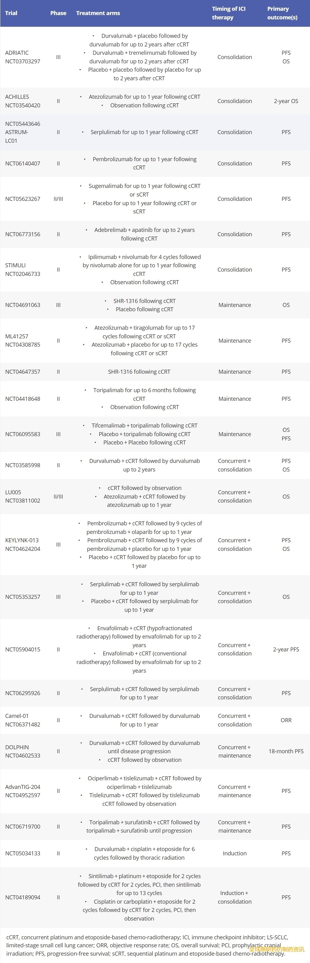 表1. ICIs与放化疗联合治疗LS-SCLC的临床试验。