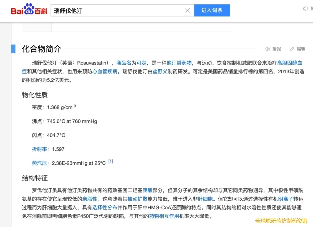据《百度百科》资料,瑞舒伐他汀(英语:Rosuvastatin),商品名为可定,是一种他汀类药物,与运动、饮食控制和减肥联合来治疗高胆固醇血症和其他相关症状,也用来预防心血管疾病。瑞舒伐他汀由盐野义制药研发。公开信息显示,可定是美国药品销量排行榜的第四名,2013年创造的利润约为5.2亿美元。
