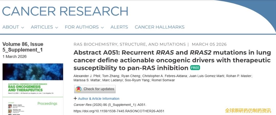 RRAS Q87L和 RRAS2 Q72L是非小细胞肺癌 (NSCLC) 中常见的、可靶向治疗的致癌驱动基因。表达RRAS Q87L 和 RRAS2 Q72L 的细胞在体外和体内均对目前已获批准和正在试验的疗法表现出敏感性,包括泛 RAS 抑制剂 RMC-6236(目前正在 RAS 突变型实体瘤患者中进行临床试验)。这项研究为将 RRAS/RRAS2 突变型肿瘤患者纳入未来 RAS 靶向治疗的临床试验提供了临床前证据。RMC-6236 对 PI3K-AKT 通路缺乏抑制作用,提示应探索联合治疗方案。
