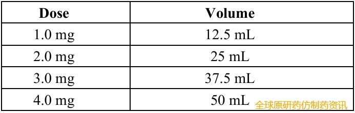 每瓶含 4 毫克米伐木肽*。复溶后,瓶中每 mL 混悬液含有 0.08 毫克米伐木肽。