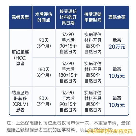 "钇享新生"产品是肝癌领域的创新支付保障产品,符合条件的肝细胞癌(HCC)及结直肠癌肝转移(CRLM)患者,根据疾病情况缴纳会员权益费用(经项目组评估)后获得治疗区域进展的疗效保障,3/6个月时经专业评估如钇-90树脂微球治疗区域内发生疾病进展即可获得最高理赔20万元(不可超过个人自费金额)。从疗效的角度帮助患者在用药经济负担层面真正解除「后顾之忧」。
